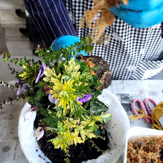 ラパンさんの沢山の花苗からお好きな花材を選んでいただくところからお楽しみいただきました💠